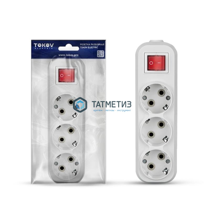 Колодка удлинителя 3-м с/з АВС-плас 16А с выкл.бел. TOKOV ELECTRIC