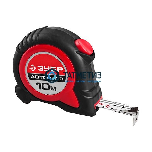 Рулетка ЗУБР, 10м х 25мм, автостоп, ударост. обрезин. корпус, профессиональная